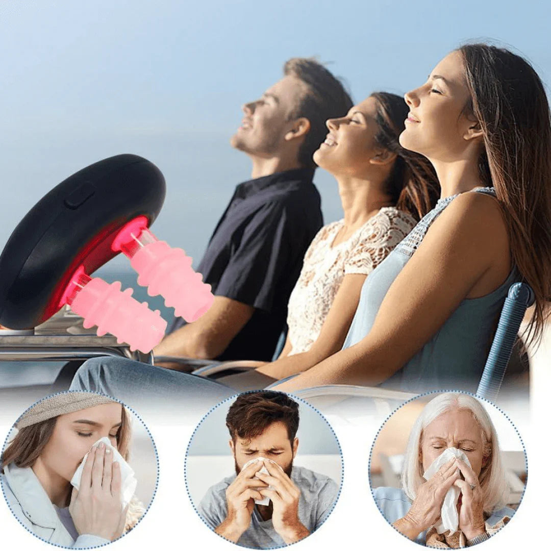 Utiliza terapia de luz roja para reducir la inflamación y aliviar la congestión, fortaleciendo las defensas nasales.